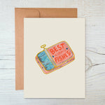 Best Birthday Fishes - Funny Sardine Birthday Card -MATERIALS: Printed on 110# white cardstock. Includes a kraft paper envelope -SIZE: A2, folded -INSIDE: Blank inside *Arrives in a cellophane sleeve Sardine Art, Tinned Fish, Fish Art, Sardine Greeting Card, Funny Greeting Card