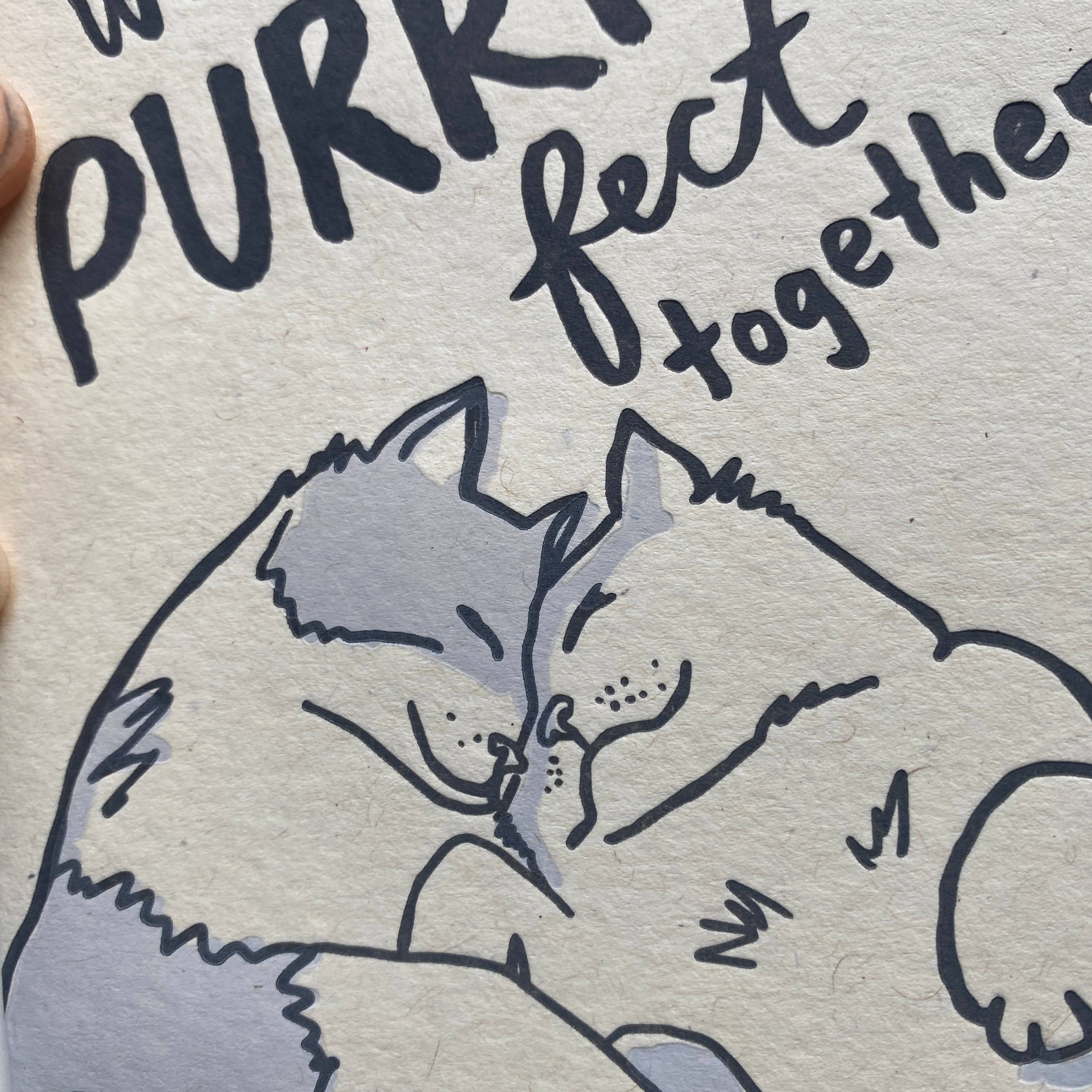 Handprinted, one piece of paper and one color at a time, in a small 2-person studio just outside of Asheville, North Carolina, on vintage letterpress equipment, using eco-friendly practices, American made paper, compostable plastic sleeves (when possible). We are truly a teeny-tiny operation and appreciate every order!