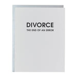 Our "Divorce: End of an Error" card is letterpress printed on a vintage printing press in sunny California.