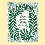 Your baby is already so loved. - size A2, 4.25 inches by 5.5 inches folded - offset printed on bright white paper - packed in a cello sleeve with corresponding envelope (color may vary) - blank inside, ready for your own special message! - printed locally in California, assembled in our Los Angeles studio