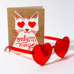 Printed in bright red and metallic gold, this charming little kitty only has eyes for you, and they are full of love. Ideal for Valentine's Day, an anniversary, or just because.