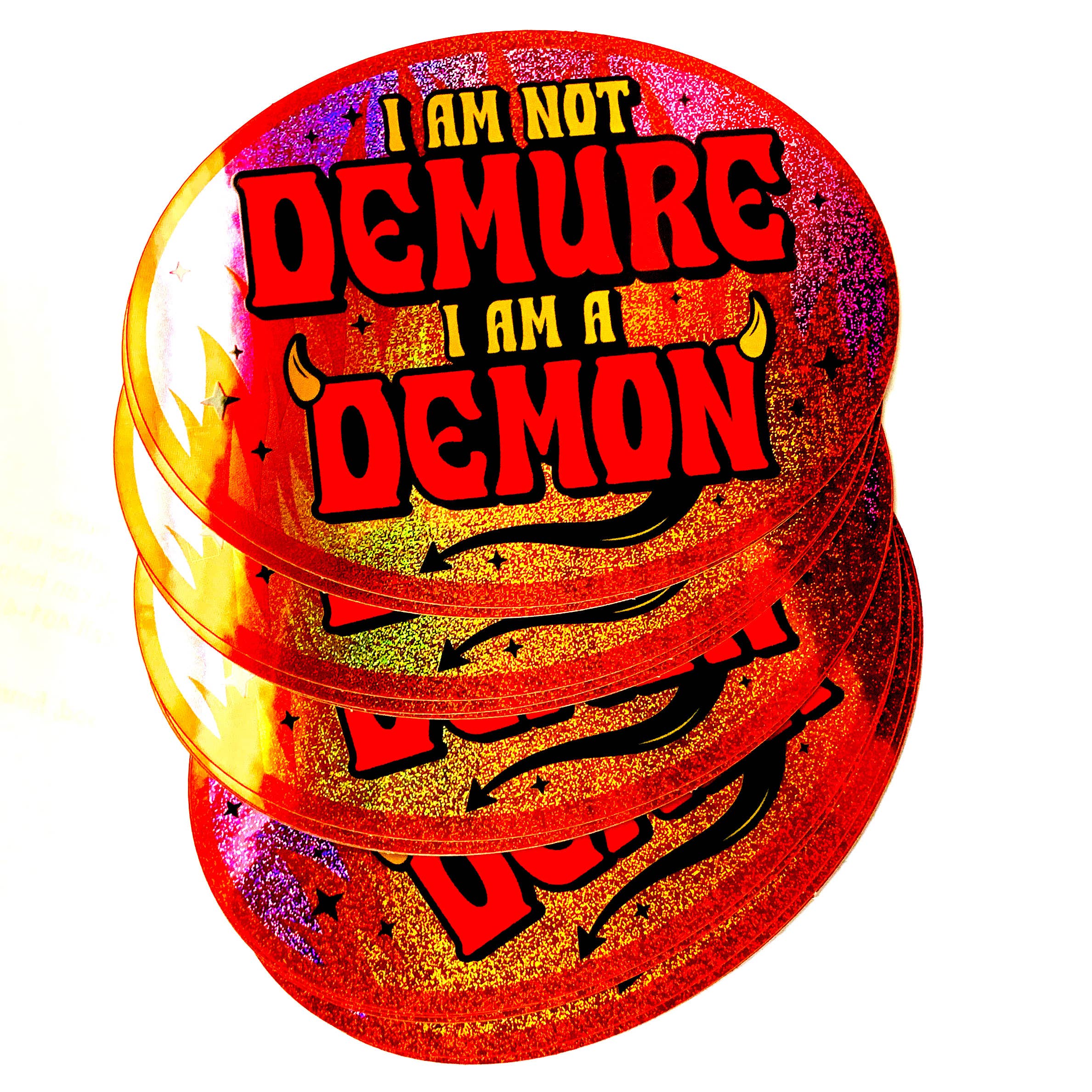'I Am Not Demure I Am a Demon' Holographic Glitter Sticker