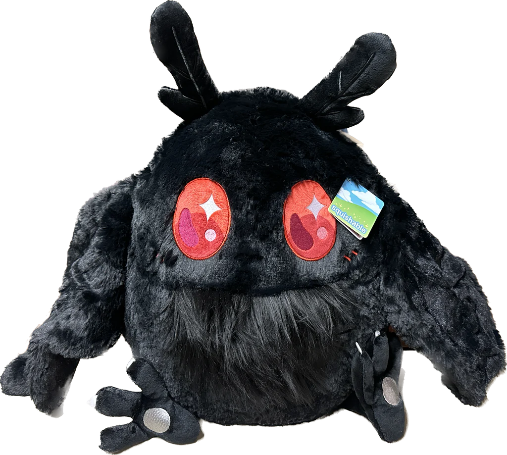 West Virginians!!! Also everyone else! REJOICE as the Baby Mothman has now graced us with their largest presence yet!! Imagine coming home from a long night of cryptid and creature searching, when the real creature is waiting for you with open wings and a soft belly perfect for hugging! This Mothman has magnets in his wingtips so he can hug himself! And you! If you're magnetic!