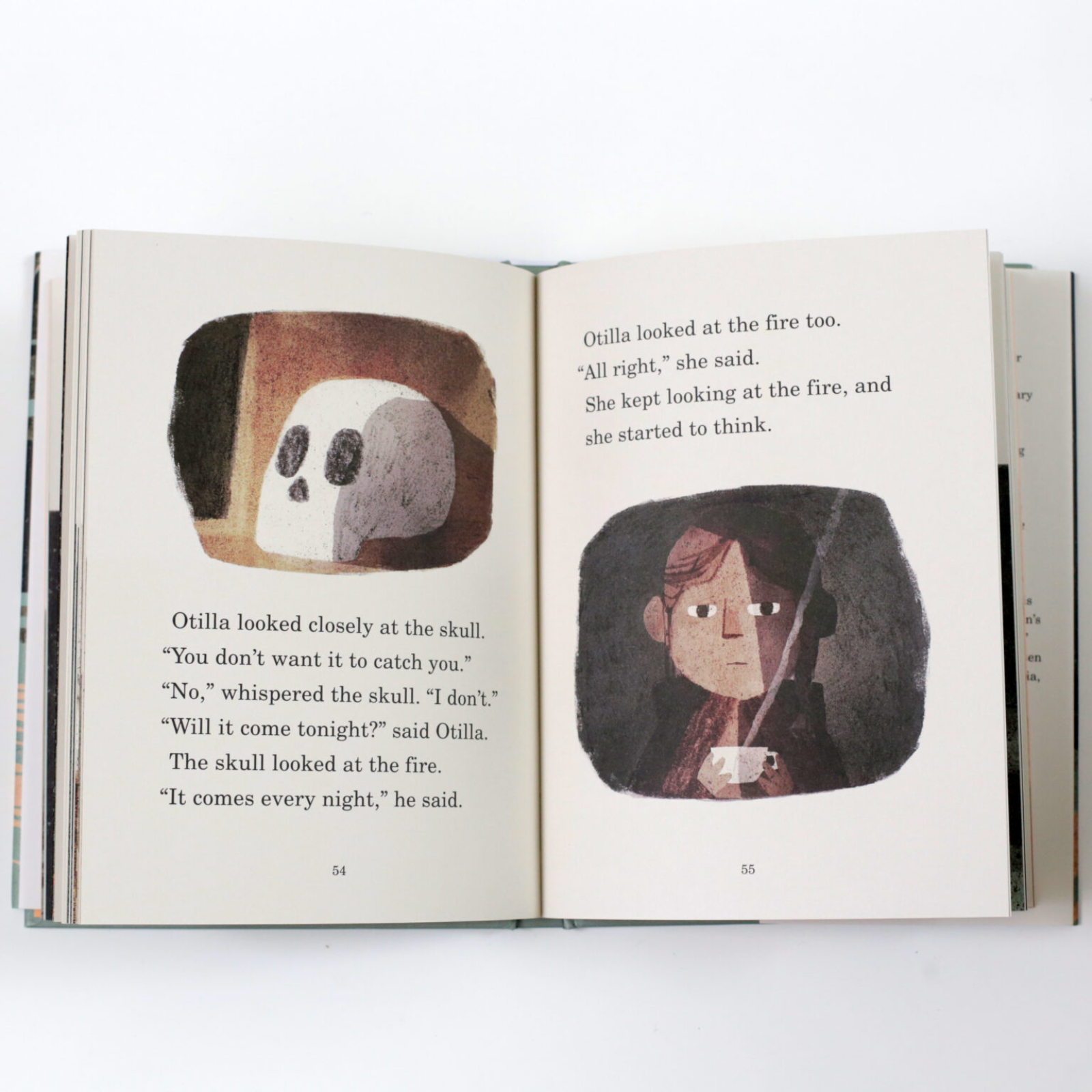 Jon Klassen's signature wry humor takes a turn for the ghostly in this thrilling retelling of a traditional Tyrolean folktale. In a big abandoned house, on a barren hill, lives a skull. A brave girl named Otilla has escaped from terrible danger and run away, and when she finds herself lost in the dark forest, the lonely house beckons. Her host, the skull, is afraid of something too, something that comes every night. Can brave Otilla save them both? Steeped in shadows and threaded with subtle wit—with rich, monochromatic artwork and an illuminating author’s note—The Skull is as empowering as it is mysterious and foreboding.