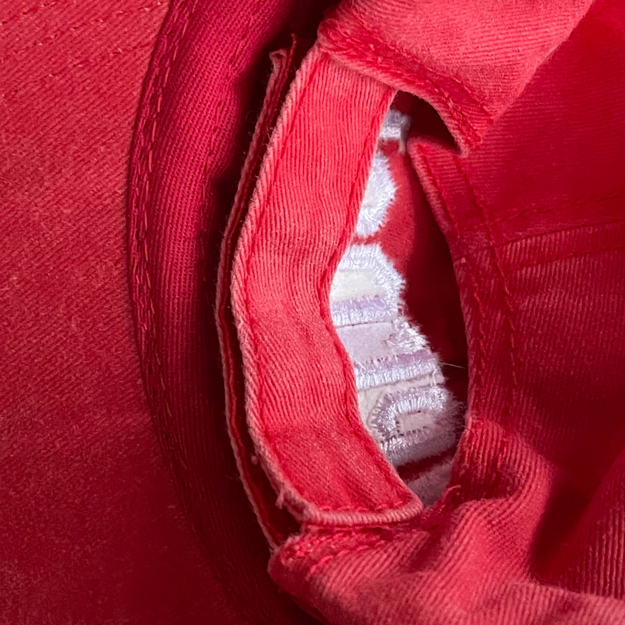 - One size fits most hat in a faded red with white embroidery