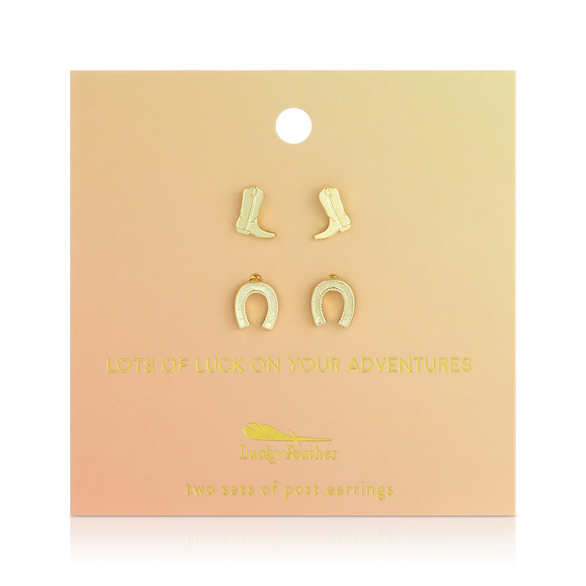 Two sets of 14k gold dipped and nickel-free stud earrings with post backing. Perfect for styling with our hoops for a dreamy earscape!