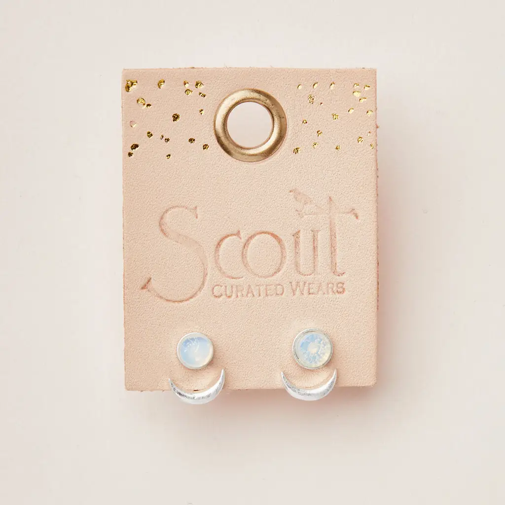Stone Moon Phase Ear Jacket - Opalite / Silver