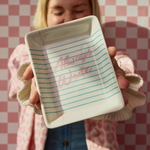A+ in gifting! The Packed Party "Always Write" Trinket Tray & Earring Set is the perfect way to show some love—especially for your favorite teacher. Featuring a ceramic tray with a playful notebook paper print and the phrase “Always Write,” it’s paired with the cutest apple-shaped enamel earrings, each with a sparkling gemstone core. Whether it's a desk accessory, jewelry catch-all, or just a little pick-me-up, this set earns extra credit in charm and thoughtfulness.