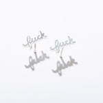 We are not fucking around with these cuties. Small but fierce, these sterling silver plated brass posts measure a teensy 1cm - perfect for sneaking in wee fuck when you need it. Custom laser-cut in the handwritten cursive script of our own boss babe, Larissa, this is a 100% original design and 100% badass on a sterling silver friction push back post with sterling silver butterfly ear nut. Nickel free and naturally hypoallergenic.