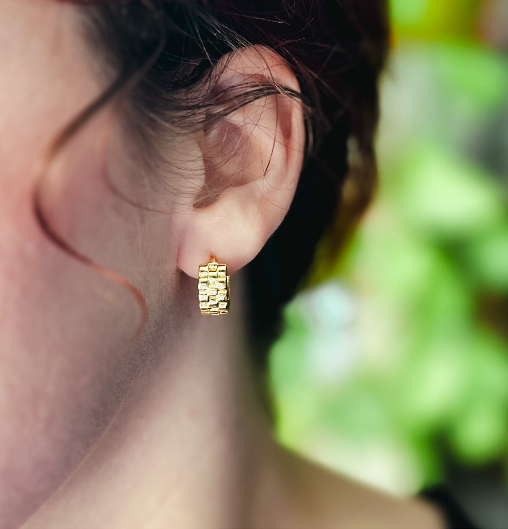 Experience minimalist elegance with our Geometric Huggie Hoop. Made from high-quality brass and finished with 18k gold plating, these simple hoops add a touch of glamour to any outfit. Lightweight and comfortable to wear, they effortlessly elevate your style.