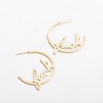 There's no occasion these fucking hoops won't be the star of the show. Be your baddest, don't give a fuck self in these custom-cut gold plated babes - an everyday hoop that goes fucking hard. A 100% original design, these hoops feature the handwritten script of our very own boss babe maker, Larissa. Sterling silver posts are nickel-free and naturally hypoallergenic and measure 1 1/2 inches in length and width.