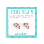All 0.5'' enamel earrings are plated in 22k gold with stainless steel posts.