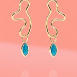 Abstract Wiggle Gold Plated Hoops - Blue Glass Charm
