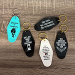 - Keychain is an adaptation from the classic hotel/motel key tags.