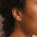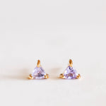 Our Mini Energy Gem studs feature a triangular stone set in a prong.