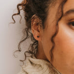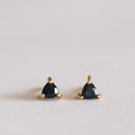 Our Mini Energy Gem studs feature a triangular stone set in a prong.