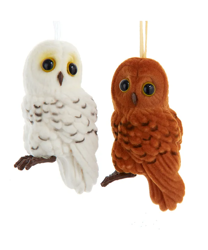 These Flocked Owl Ornaments from Kurt Adler are a charming and nature-inspired addition that brings the spirit of woodland beauty and winter wonder to your Christmas tree. This assortment includes two owl versions, each with a flocked texture. These ornaments capture the essence of owls in a winter setting, and their loop allows for easy hanging on your Christmas tree.