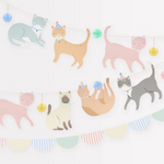 - Garland features 6 kittens, 5 tissue paper honeycomb balls and a scalloped garland with 12 pennants