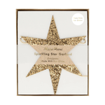 - The paper stars are covered with chunky platinum gold glitter on the front