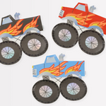 Brumm, brumm! The monster trucks are revving and raring to go! Add a blast of color and fun to any birthday party table with these cool paper plates. They're ideal for a monster truck party, transport party or simply to give an entertaining and retro vibe to any celebration.