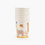 A parade of party animals march around these paper cups. With balloons, presents, and gold foil accents for extra fun, these are a perfect addition to your party tablescape!