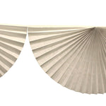 Beautiful bunting garland made from six scallops of high quality honeycomb tissue paper. These extra-large garlands span 10.5 feet when hanging at a slight dip and are suitable for long walls, hallways, and other open spaces. Each garland comes with hanging tabs at the ends and should be hung using strong tape due to their large size. A popular choice for weddings, baby showers, first communion, classroom, and spring or Easter decor.