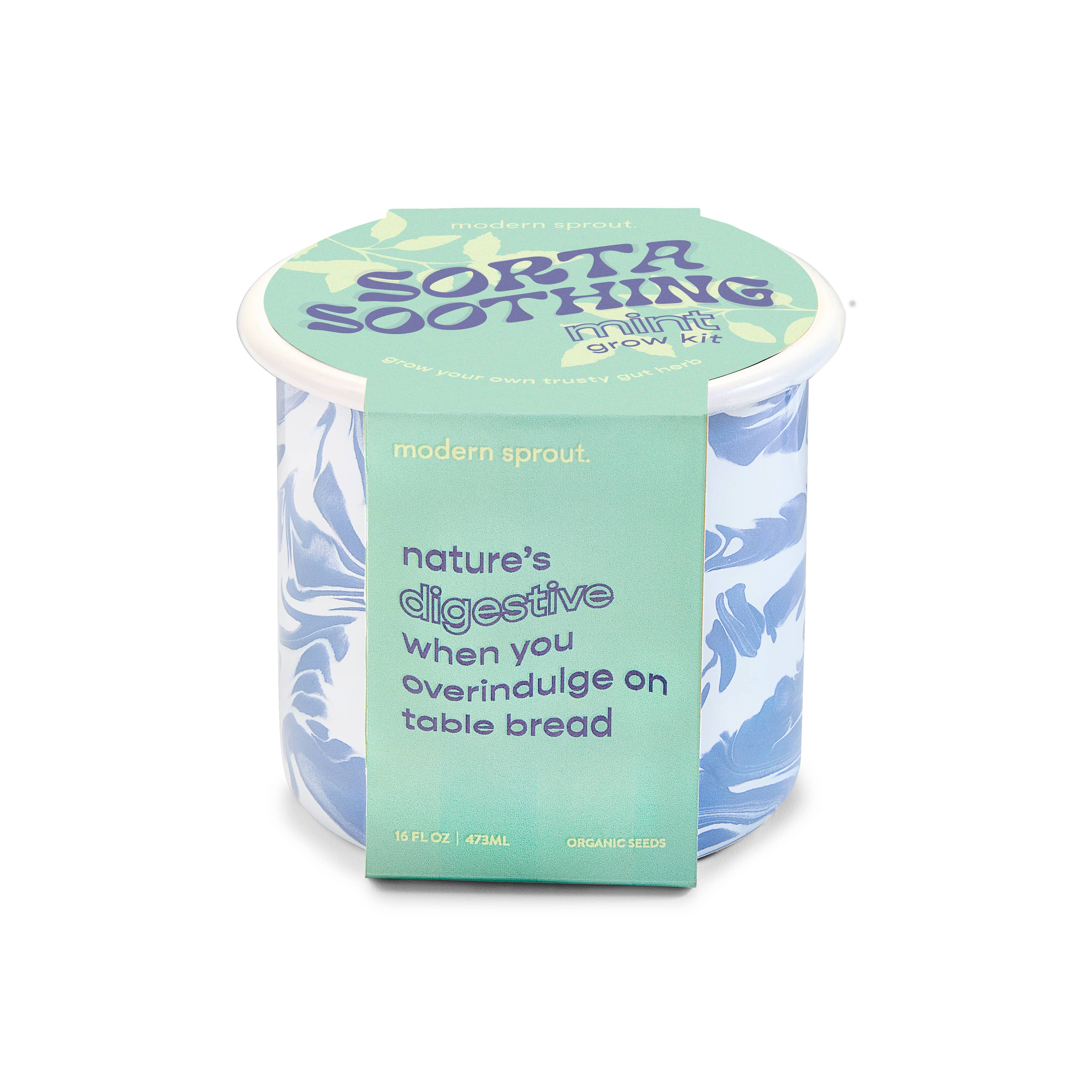 Self-care gifting that sparks joy through comedic and relatable messaging. - Great value with trend-forward, oversized enamel mug that doubles as a planter for the included grow kit. - Quick success; seeds sprout in 5-10 days and are ready to harvest in 2-3 months. - Grow with confidence, backed by our Thrive Promise. - Herbs can be used fresh or dried to make herbal tea.