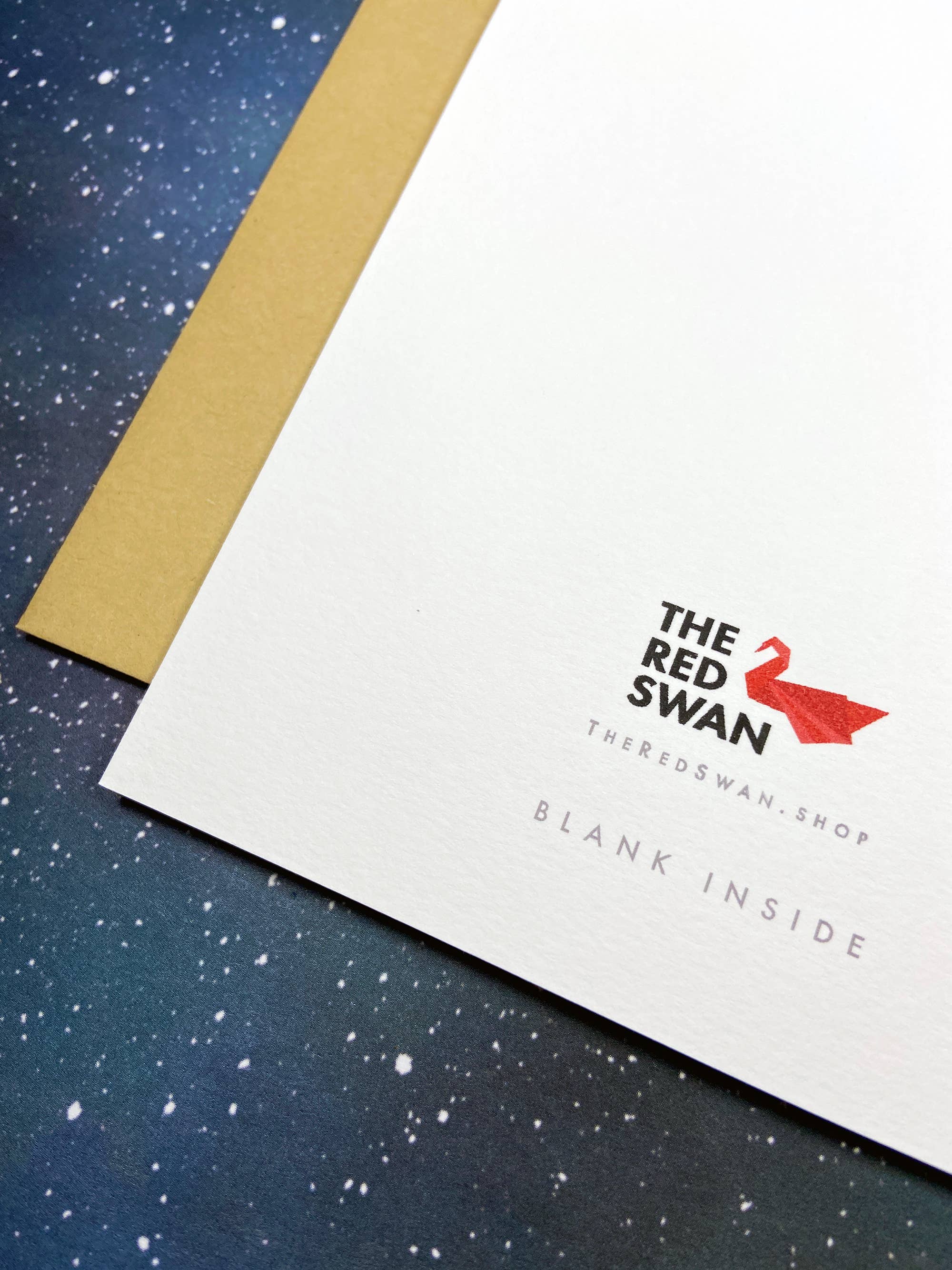 This Red Swan Greeting Card says "Happy 420 (and don't forget to leave out the gin &juice for Snoop Dogg)"