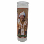 Tall white altar/ prayer candle featuring the Patron Saint of Christmas Vacation.