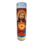 The image is photoshopped then printed and pasted to a traditional "7 day" white altar candle. Placement may vary slightly as these are hand-cut and placed.