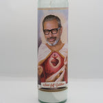Tall white altar/ prayer candle featuring the Patron Saint of Cool.