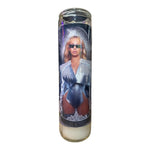 Tall white altar/ prayer candle featuring the Patron Saint of The Bey Hive.
