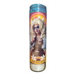 Tall white altar/ prayer candle featuring the Patron Saint of Drag.