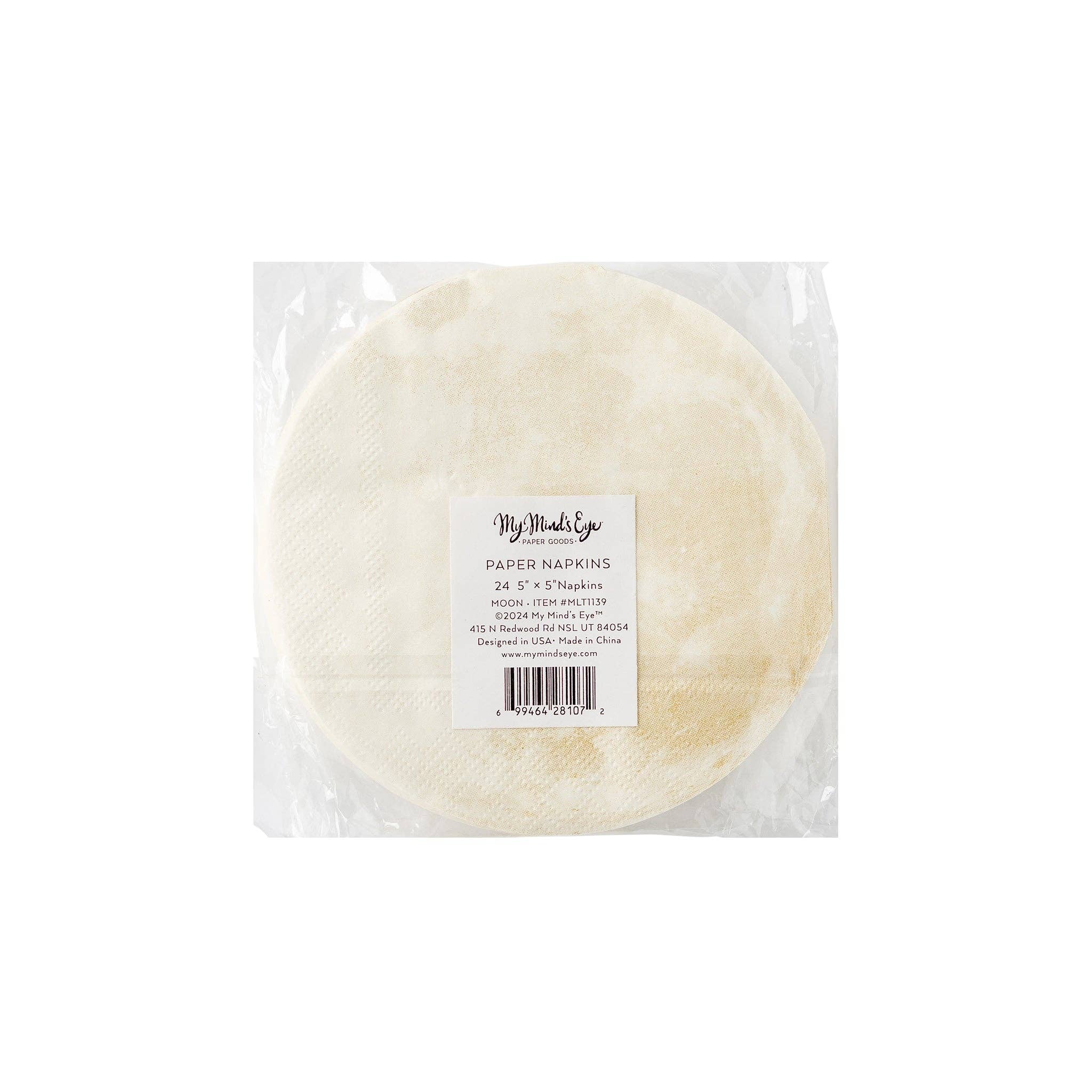 Add some fun to your space themed party with this Moon Napkin! Also great for witchy themes, full moon gatherings, and menarche parties! This unique napkin features a full moon design and is perfect for adding a touch of whimsy to any celebration. So go ahead, let the moon guide your party decor! • 24 5" x 5" napkins