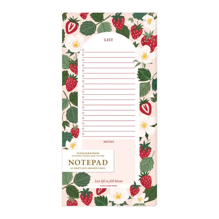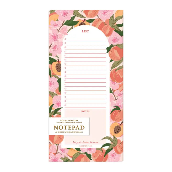 Embark on a journey of inspiration with a Paper Farm Press Market List Notepad. With lines delicately designed to capture your thoughts and lists, this notepad seamlessly combines practicality with beauty. Whether you're jotting down groceries, to-do lists, or heartfelt notes, elevate your daily routine with the Market List Notepad and sow the seeds of positivity in every aspect of your life. Includes l 1 notepad with 50 tear off pages and magnet backing Size l 3" x 8"