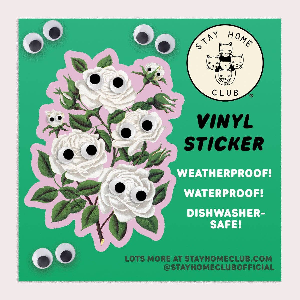 Googly White Roses Vinyl Sticker