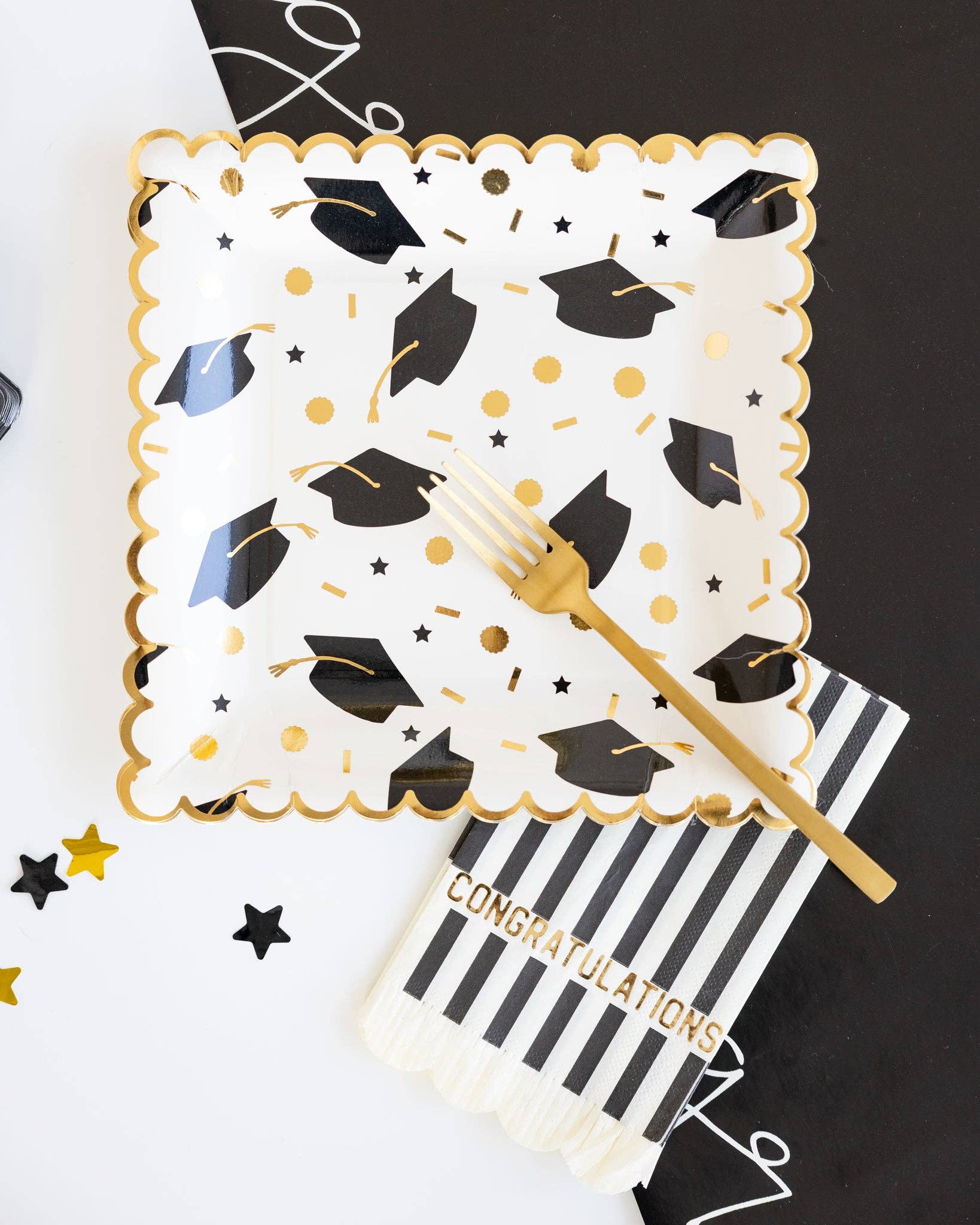 Make your graduation party a hit with this Cap Scatter Plate! Its unique design featuring graduation caps is perfect for showing off your accomplishment. No need to stress about boring plates when you can make a playful statement at your celebration!