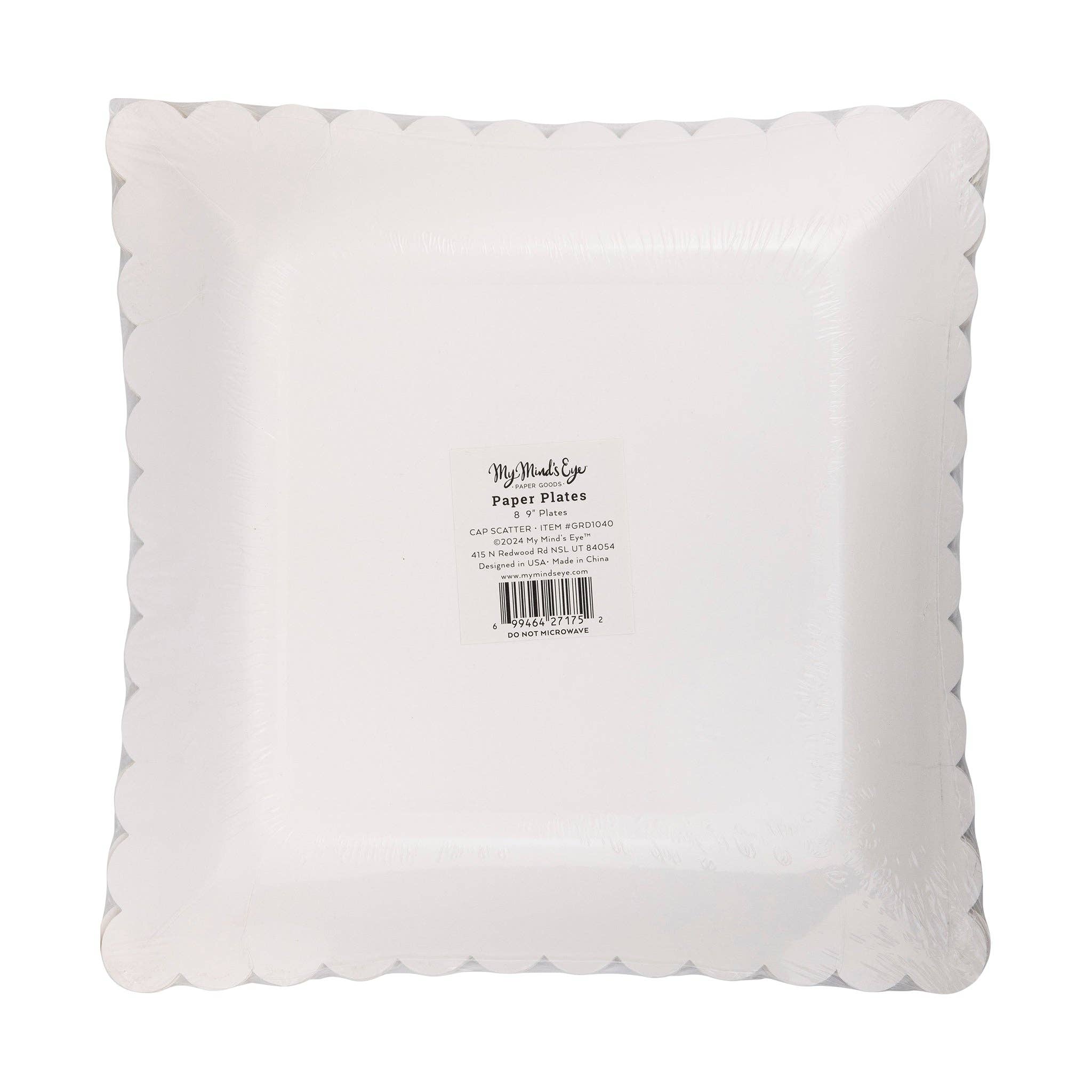 • includes 8 scalloped paper plates • 9 x 9 inches