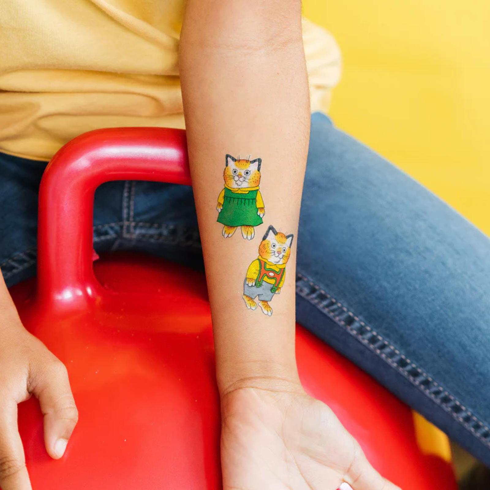 Huckle & Sally Cat Tattoo Pair by artist Richard Scarry. Quality, non-toxic and made in the USA. Tattly Pairs include two of each design packaged in a polybag and sealed with a branded topper that's ready to hang.