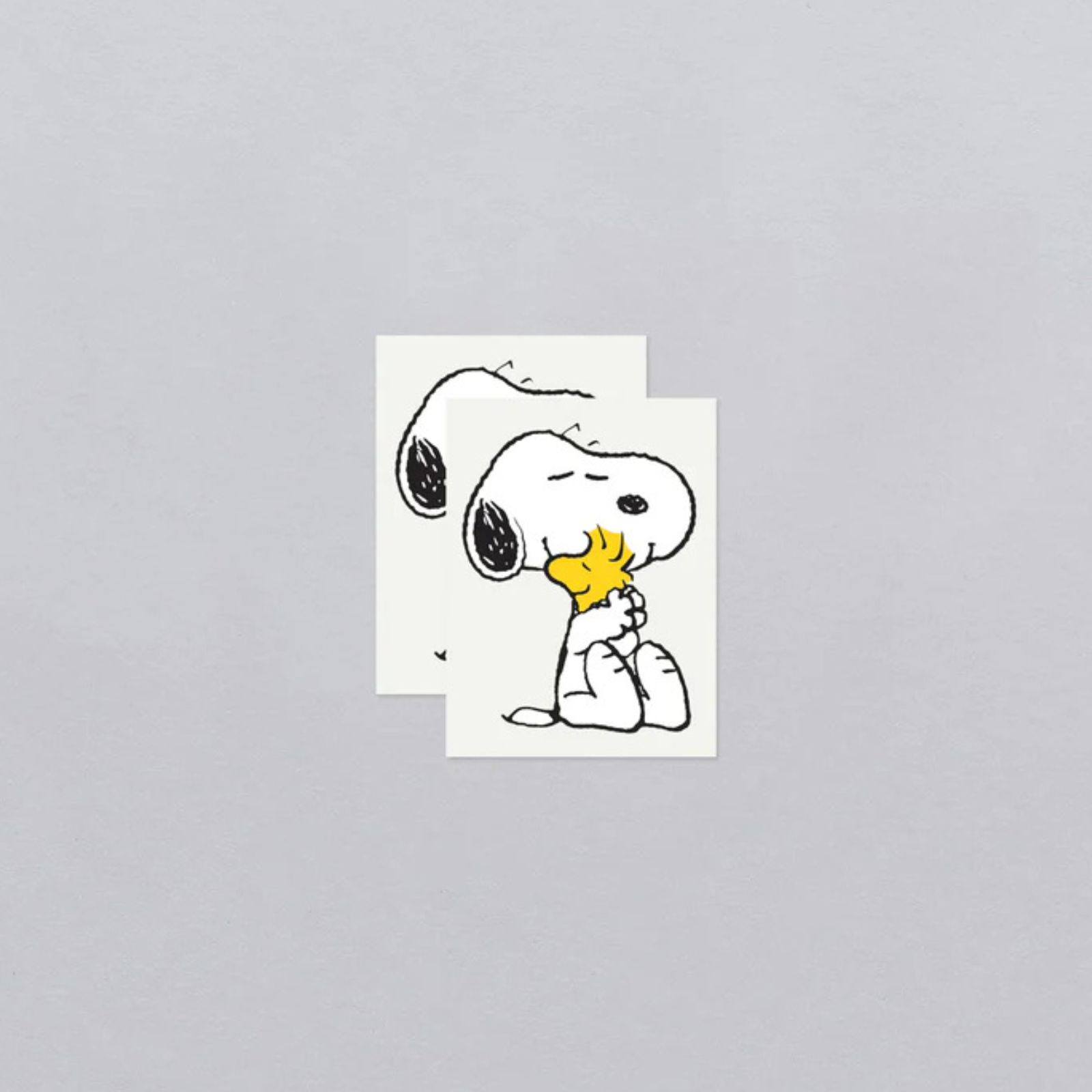 Snoopy Hugs WS Tattoo Pair by artist PEANUTS®. Safety tested, vegan, cruelty free, and made in the US with domestic and imported materials. Tattly Pairs include two of each design packaged in a polybag and sealed with a branded topper that's ready to hang.