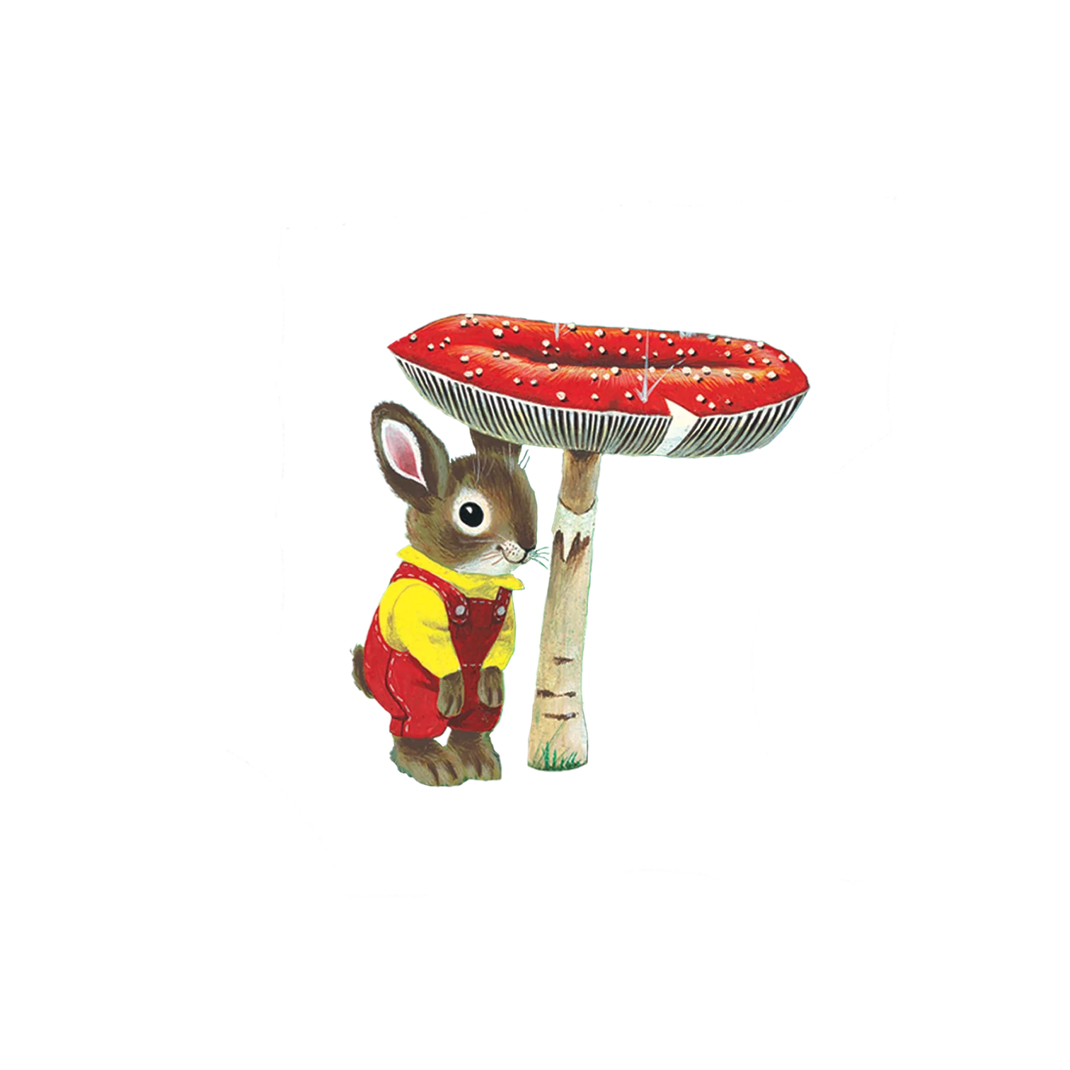 Straight from the pages of Richard Scarry's well-known story, I Am A Bunny, here's Nicholas the bunny taking cover from the rain under a toadstool! It makes us so hoppy, and we hope you'll think this tattoo is toad-ally adorable.