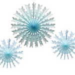 These huge paper snowflakes are perfect for decorating large spaces! Hang from the ceiling, in a window, or create a stunning backdrop along the wall. The snowflakes measure 22 inches across and come with a short, attached hanging string. They are double-sided and store flat for future use. Decorate winter or frozen themed birthday parties, baby showers, holiday displays, classroom bulletin boards, retail spaces, and more.