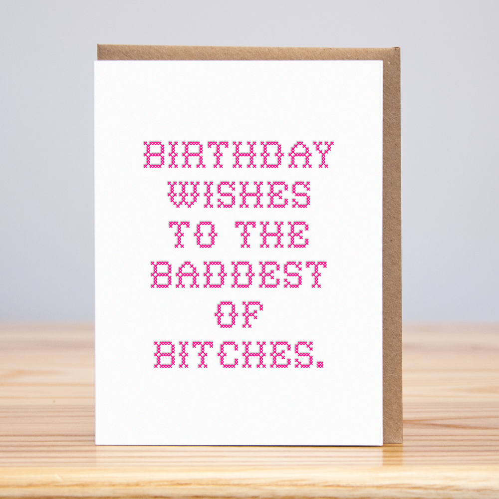Baddest of Bitches Cross Stitch Birthday Card