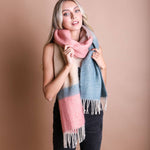 Color Block Soft Faux Mohair Scarf - Pink/Sage