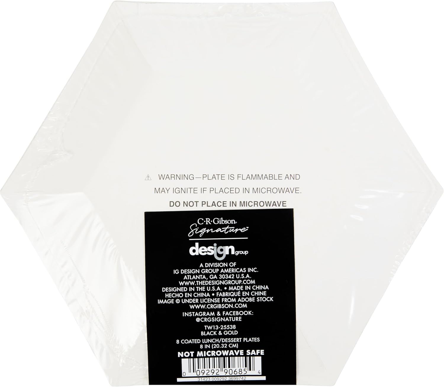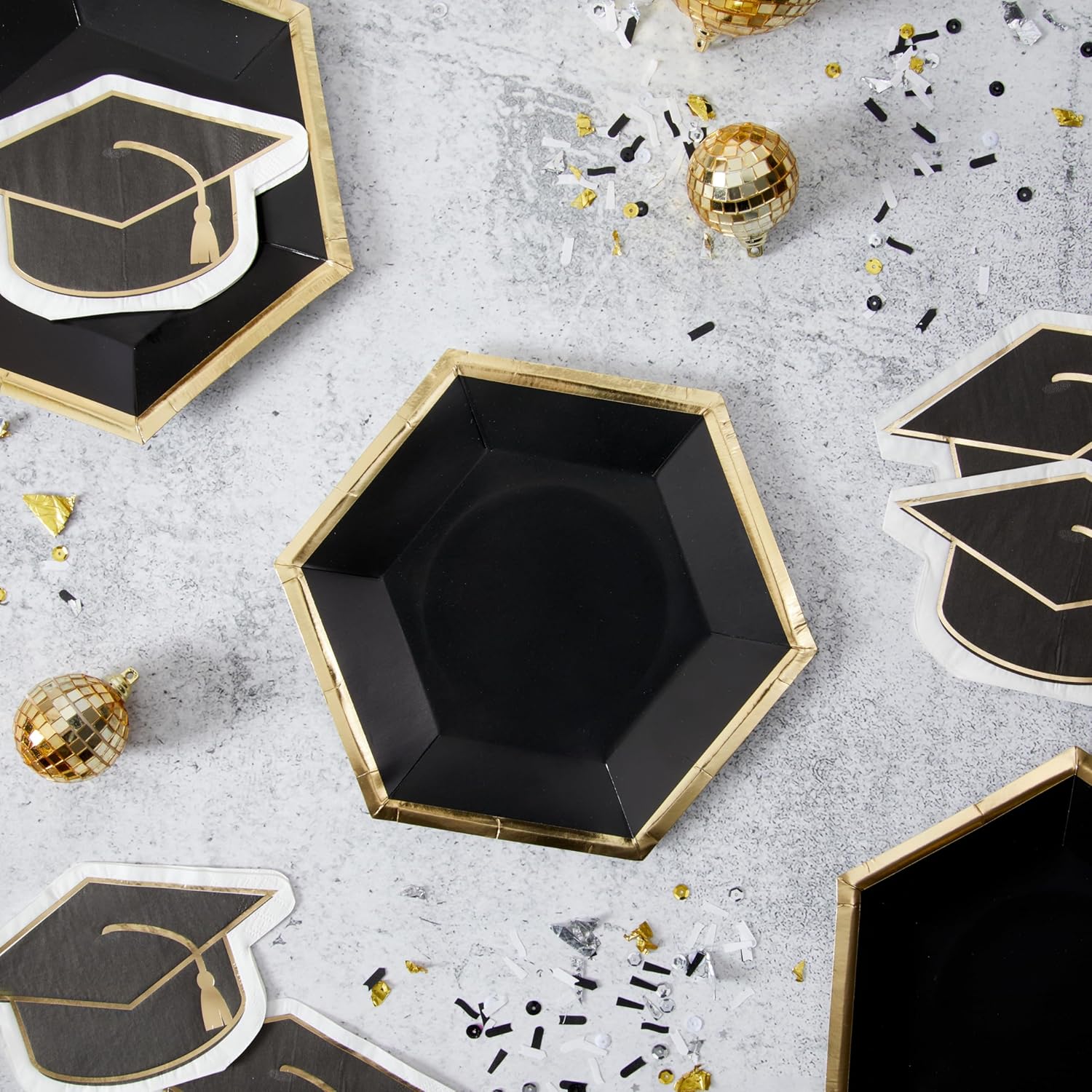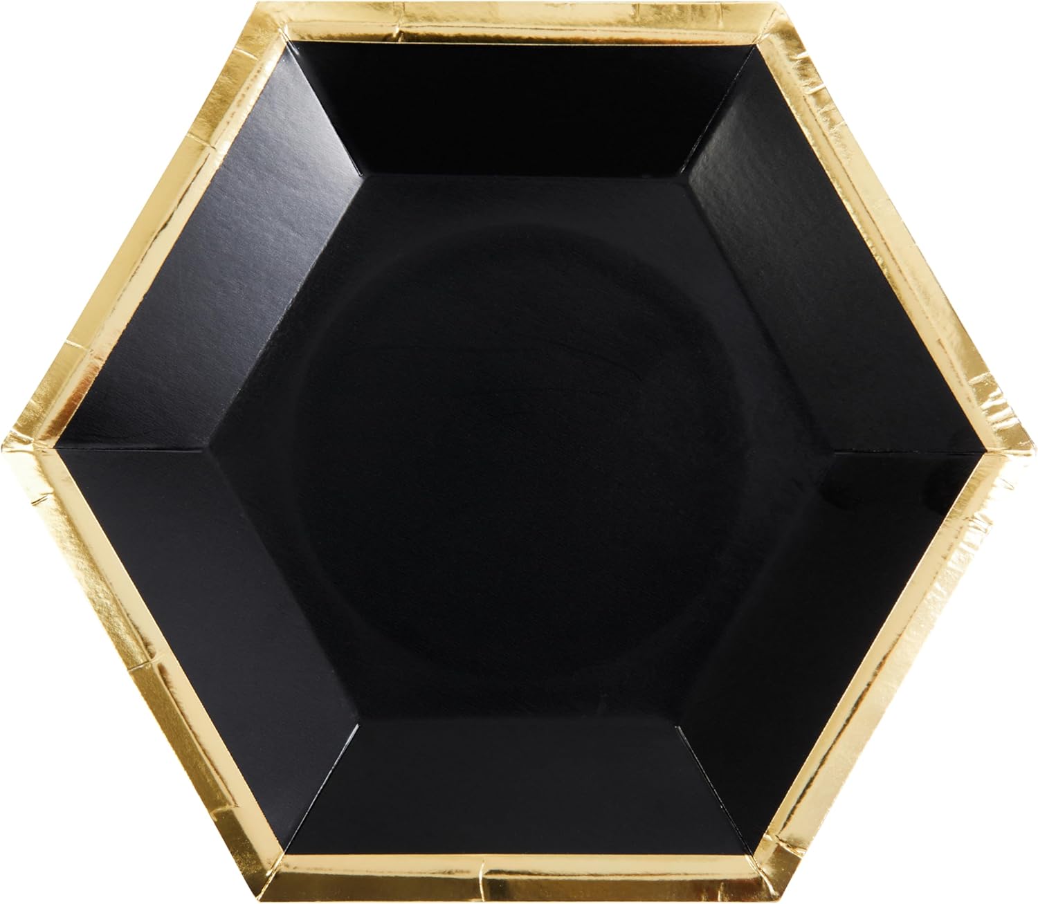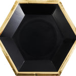 Instantly elevate your table with this set of 8 hexagon plates! Black plates with gold foil outline, 8inches. Perfect for New Year's Eve, Graduation, or an celebration with classic metallic colors!