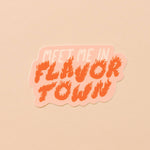 For Guy Fieri fans and foes alike, we all know that Flavortown is the tastiest place to be. Sticker reads, "meet me in flavor town"