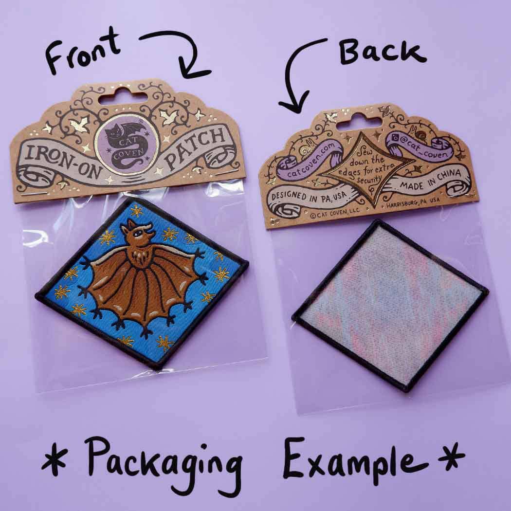 Tell anyone and you're next... 🩸 Inspired by the rabbits that decorate medieval manuscript margins. 🐇 ✦ Iron-on backing ✦ Woven design. 4 inches wide. ✦ Colors may vary slightly from your computer screen to real life product ✦ Last image shows packaging example