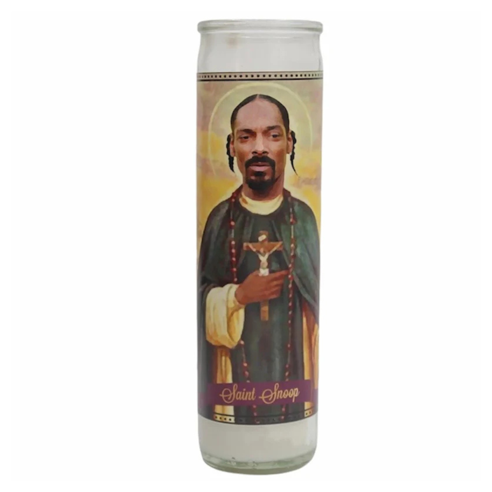 Tall white altar/ prayer candle featuring the Patron Saint of the sHizZle.